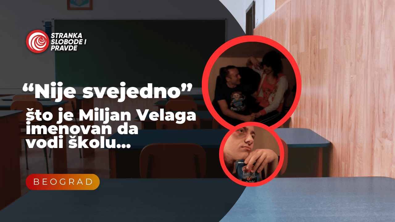 “Ako ste mislili da ne može gore nakon što je "Dron lady Danka" imenovana za v.d. direktorku Pete beogradske gimnazije prevarili ste se. Za v.d. direktora Osnovne škole „Branko Radičević“ u Boljevcima, u Surčinu, imenovan je Miljan Velaga poznat jedino po tome što se pojavio u spotu u kom nag simulira odnos sa ženskom osobom koja ga vezuje za krevet” izjavio je Miroje Vidaković predsednik odbora Stranke slobode i pravde Surčin.